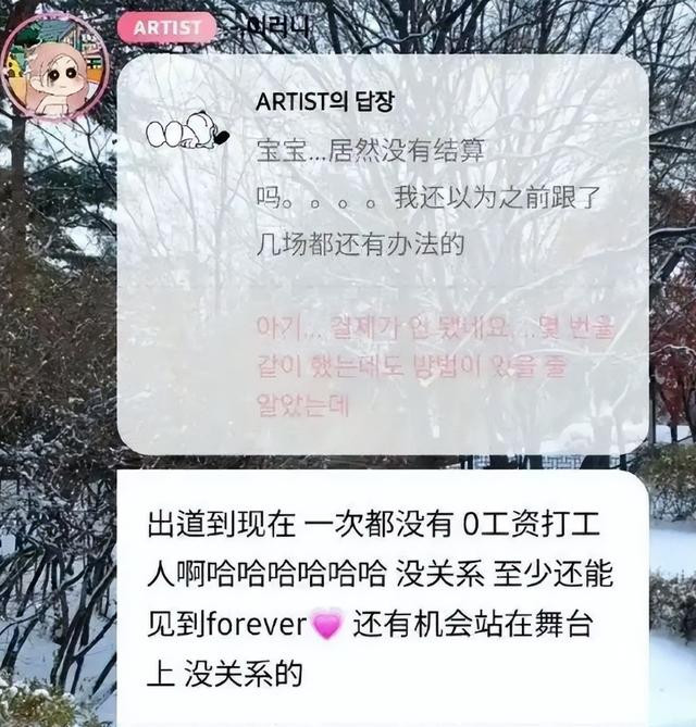 她自己在交流软件“泡泡”上透露,自己至今没有收到任何结算,成了“0工资打工人”,